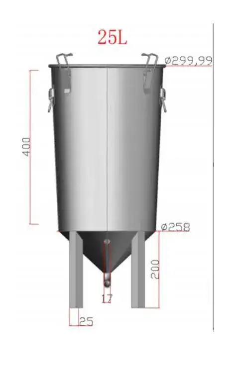 מיכל תסיסה קוני בנפח 25 ליטר. מנירוסטה. עשוי ללא תפר וקל לניקוי