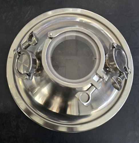 - מכסה טריקלאמפ עם שלשה פתחים :שתיים של טריקלאמפ 1.5 אינטש ואחד של 4 אינטש. כולל את המכסה השקוף