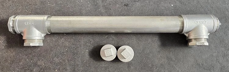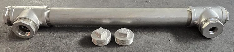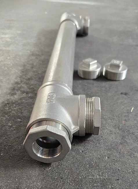 לצינור נירוסטה יש מתאמי הברגה של חצי אינטש ואחד אינטש