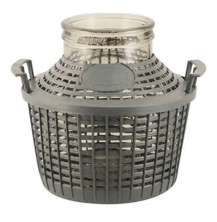 כד זכוכית עם פתח רחב , מגיע בתוך סלסלת פלסטיק