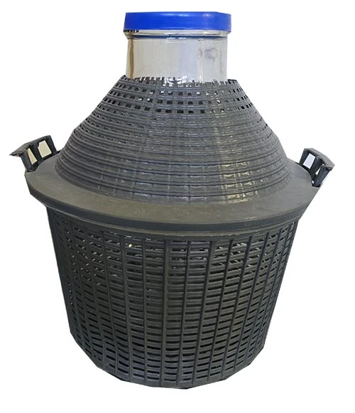 כד זכוכית עם פתח רחב , מגיע בתוך סלסלת פלסטיק